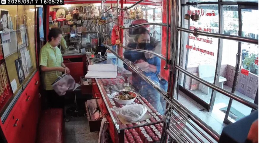 Khách hàng được xác định là cô Sureenut Buasri, 57 tuổi, vừa mới đi bán một chiếc nhẫn vàng. Người đàn ông đã bóp cổ cô và dí dao vào eo cô trong khi đòi vàng từ chủ cửa hàng, bà Nanthawan Piamkhiew, 72 tuổi.