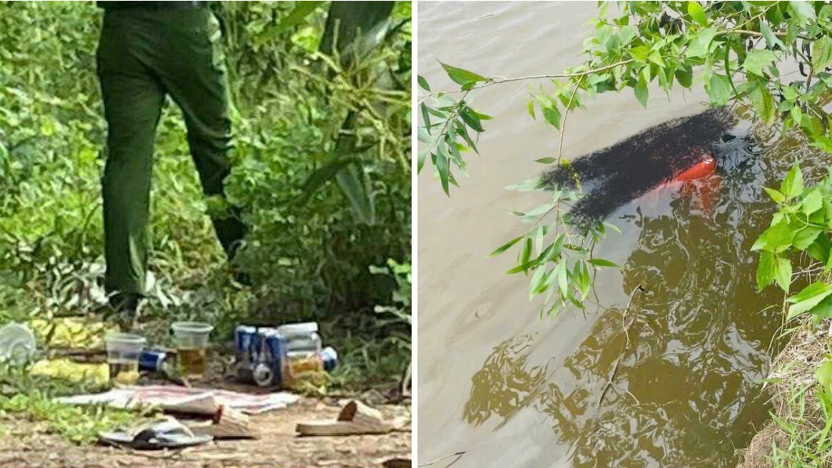 Kiểm tra xung quanh con sông, công an ghi nhận một xe máy biển số 59Y1-008.64 dựng trên bờ. Trên xe có một áo khoác nam màu đen và một áo khoác nữ màu đỏ. Theo giấy tờ, chủ xe là anh Nguyễn Văn Hóa (trú tại TP.HCM). Cách thi thể nam khoảng 10 mét, lực lượng chức năng tìm thấy một số vật dụng như đồng hồ, 10 vỏ lon bia, một đôi dép nữ và một đôi dép nam.