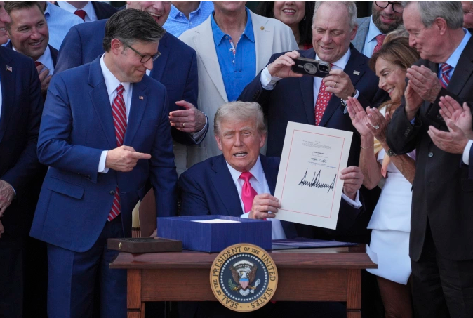 Tổng thống Donald Trump ký ban hành OBBBA tại Nhà Trắng ngày 4/7. Ảnh: AP