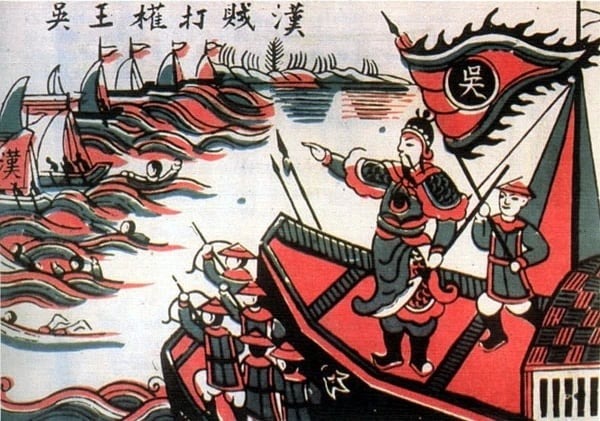 Tranh dân gian thể hiện "Ngô Vương Quyền đánh Nam Hán".
