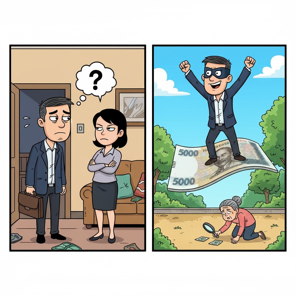 – Đâu có… Lúc đó anh đang đứng trên tờ 500 nghìn đó. Phải đợi đến giờ này bà cụ mới chịu bỏ đi, anh mới dám nhặt!
