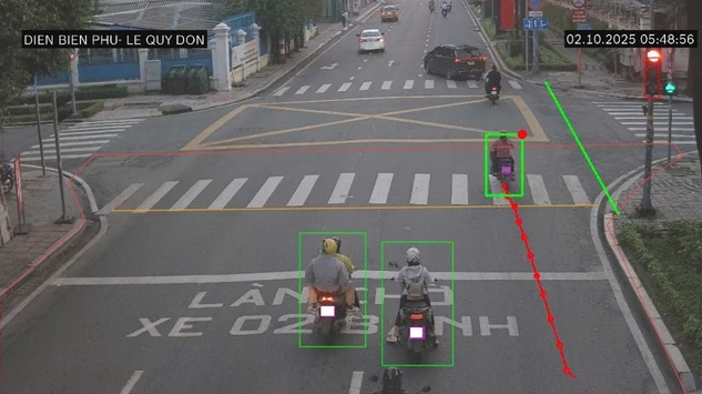 Camera AI phát hiện xe máy vượt đèn đỏ tại giao lộ Điện Biên Phủ - Lê Quý Đôn