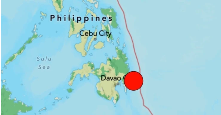 Trong khi đó, Cơ quan Khảo sát Địa chất Mỹ (USGS) xác định tâm chấn nằm ở phía đông đảo Mindanao, cách thành phố Davao khoảng 123 km, ở độ sâu 58,1 km.