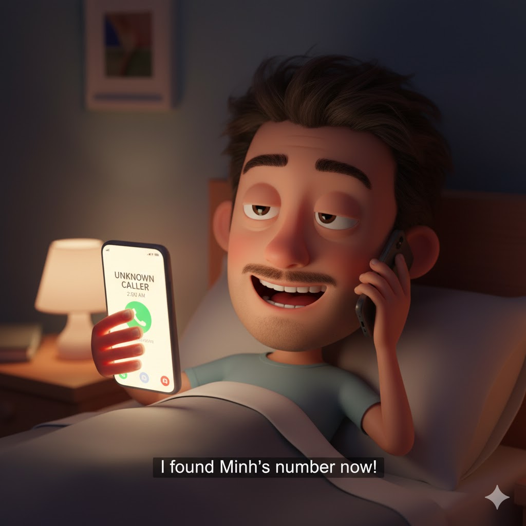 “À, tôi là người gọi nhầm lúc nãy. Báo cho Hải biết là tôi tìm được số Minh rồi nhé! Chúc Hải ngủ ngon!”