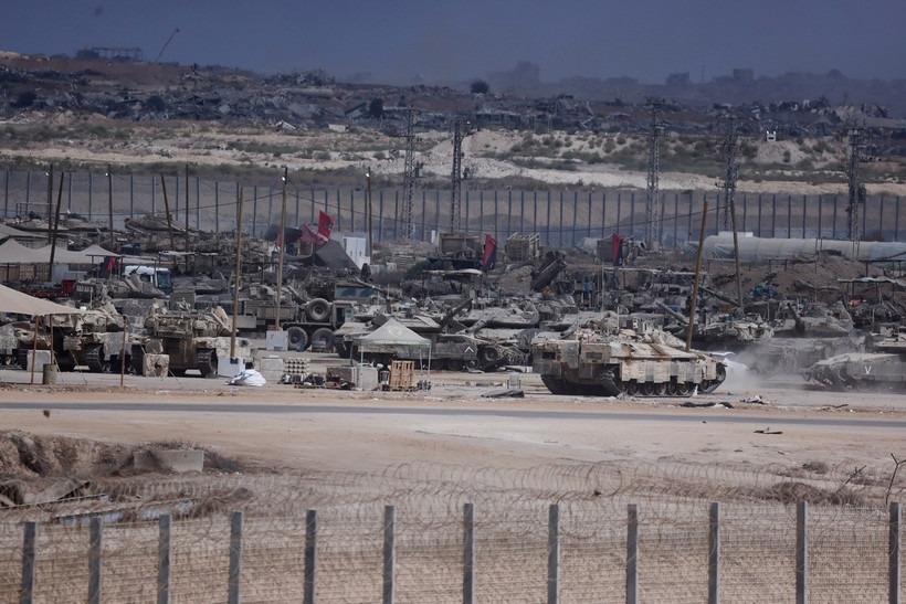 Xe quân sự Israel tại biên giới Israel-Gaza, ngày 9/10/2025. (Nguồn: THX/TTXVN)