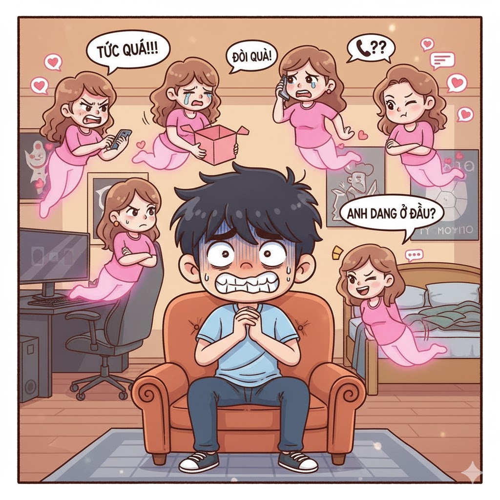 Tối đó, thằng bạn tôi – một đứa chuyên triết lý tình yêu kiểu “tình cảm là phép toán” – ngồi uống trà đá, mắt lim dim, tay đan vào nhau như đang cầu nguyện. Tôi hỏi: