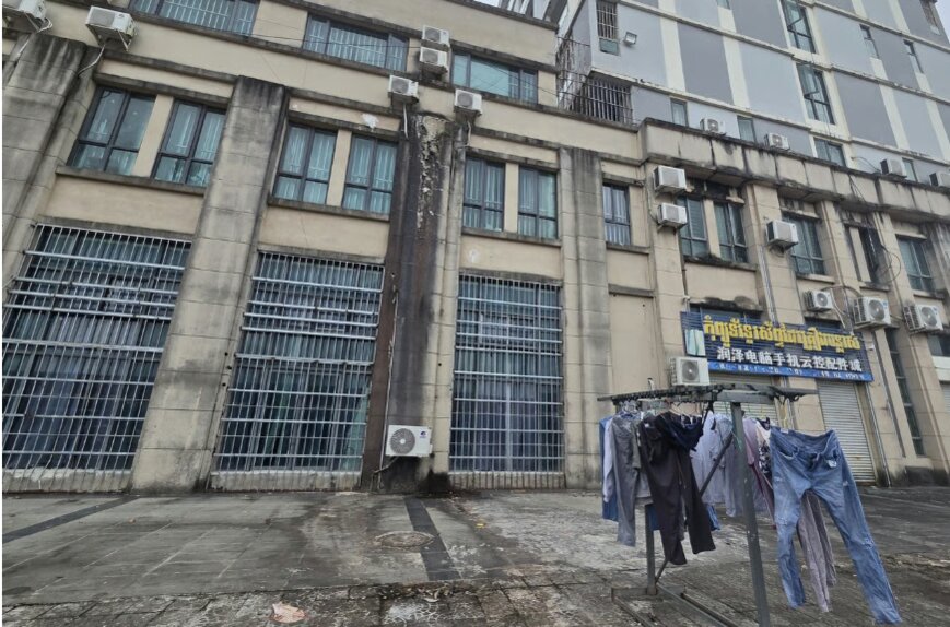 Bức ảnh chụp vào ngày 14/10 cho thấy một tòa nhà có cổng, được cho là nơi hoạt động của các băng nhóm tội phạm tại thành phố Sihanoukville, Campuchia (Ảnh: Yonhap)