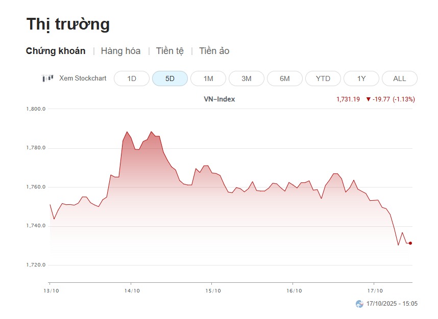 Diễn biến VN-Index trong tuần giao dịch ngày 13 - 17/10. Ảnh: Vietstock