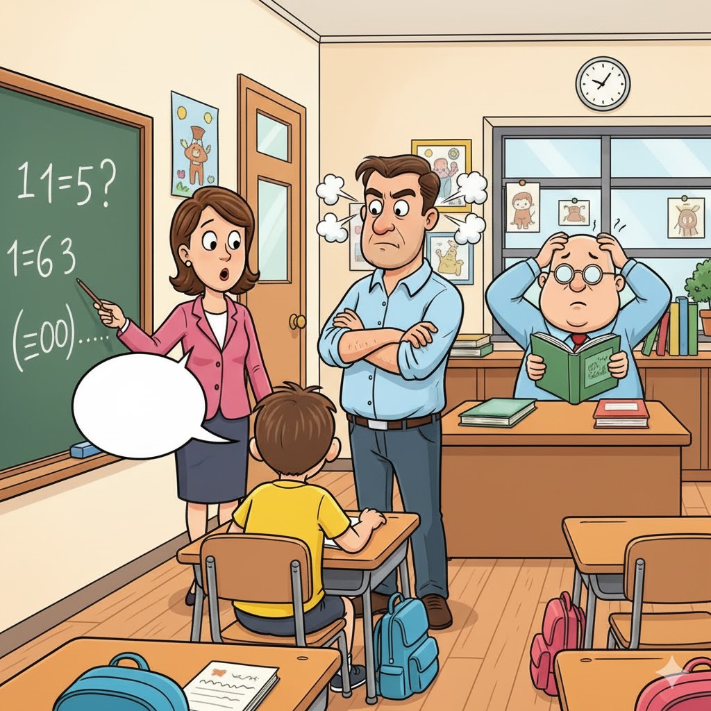 – Trời ơi, lớp trưởng mà học kém thế này thì còn ai chịu nổi! Về hỏi bố em cho cô biết nhé!