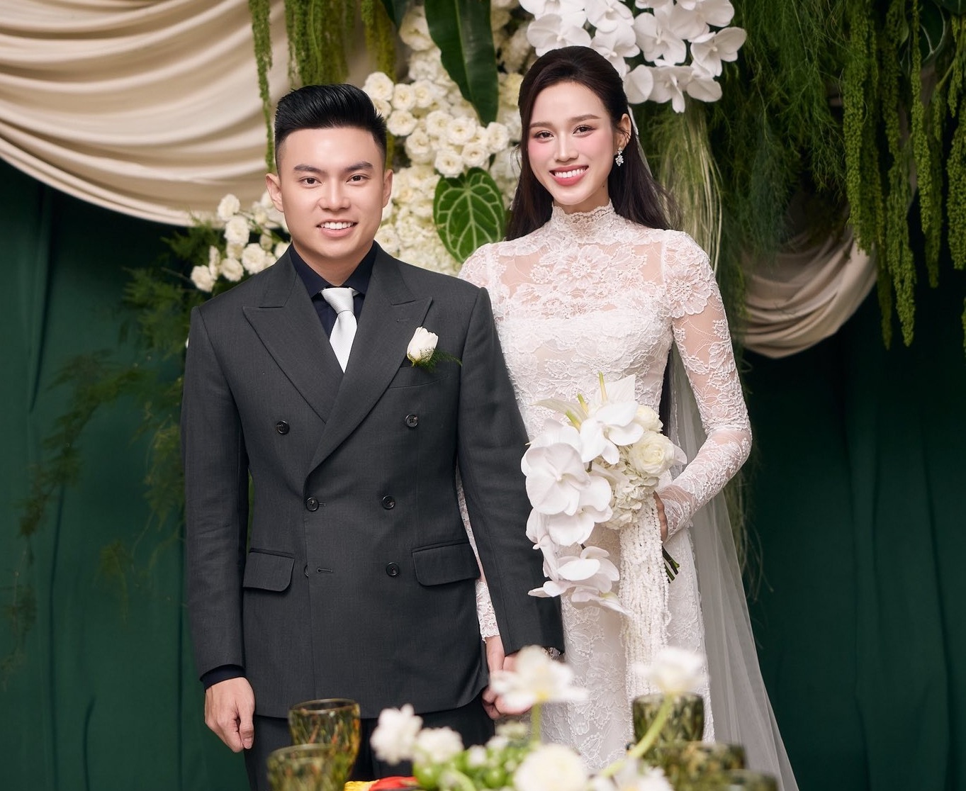 Hoa hậu Đỗ Thị Hà chọn áo dài cưới ren trắng nhẹ nhàng, thanh tao cho thời khắc lên xe hoa với doanh nhân Nguyễn Viết Vương - Tổng giám đốc Tập đoàn Sơn Hải.
