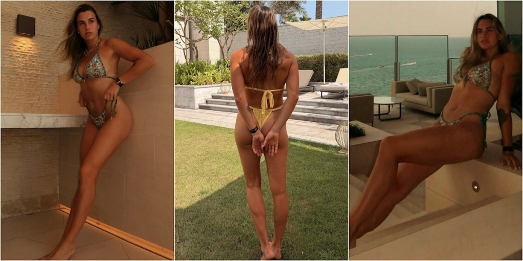 Loạt ảnh bikini của Sabalenka trên mạng xã hội, khi cô nghỉ dưỡng tại Dubai, UAE tuần này. Ảnh: Sun