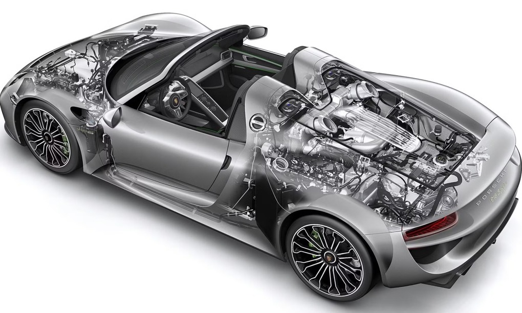 Hệ thống hybrid trên Porsche 918 Spyder. Ảnh: Porsche