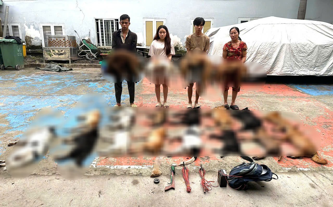 4 đối tượng gồm: Đặng Nhật Bằng (SN 2002, thường trú xã Bà Điểm), Nguyễn Thị Thúy An (SN 1999, quê Bắc Giang, thu mua chó bị trộm), Phạm Thị Liên (SN 1967, quê Bắc Giang, chủ cơ sở) và Nguyễn Sinh Gơ (SN 1995, trú xã Bà Điểm, đối tượng trộm chó).