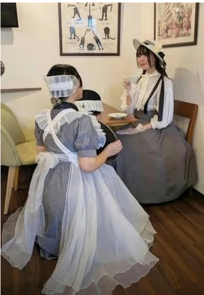 Với 25 USD cho 90 phút, khách hàng tới một quán cà phê ở Nhật Bản có thể mặc các bộ trang phục hầu gái, trải nghiệm phục vụ "khách" do nhân viên tại đây đóng vai.