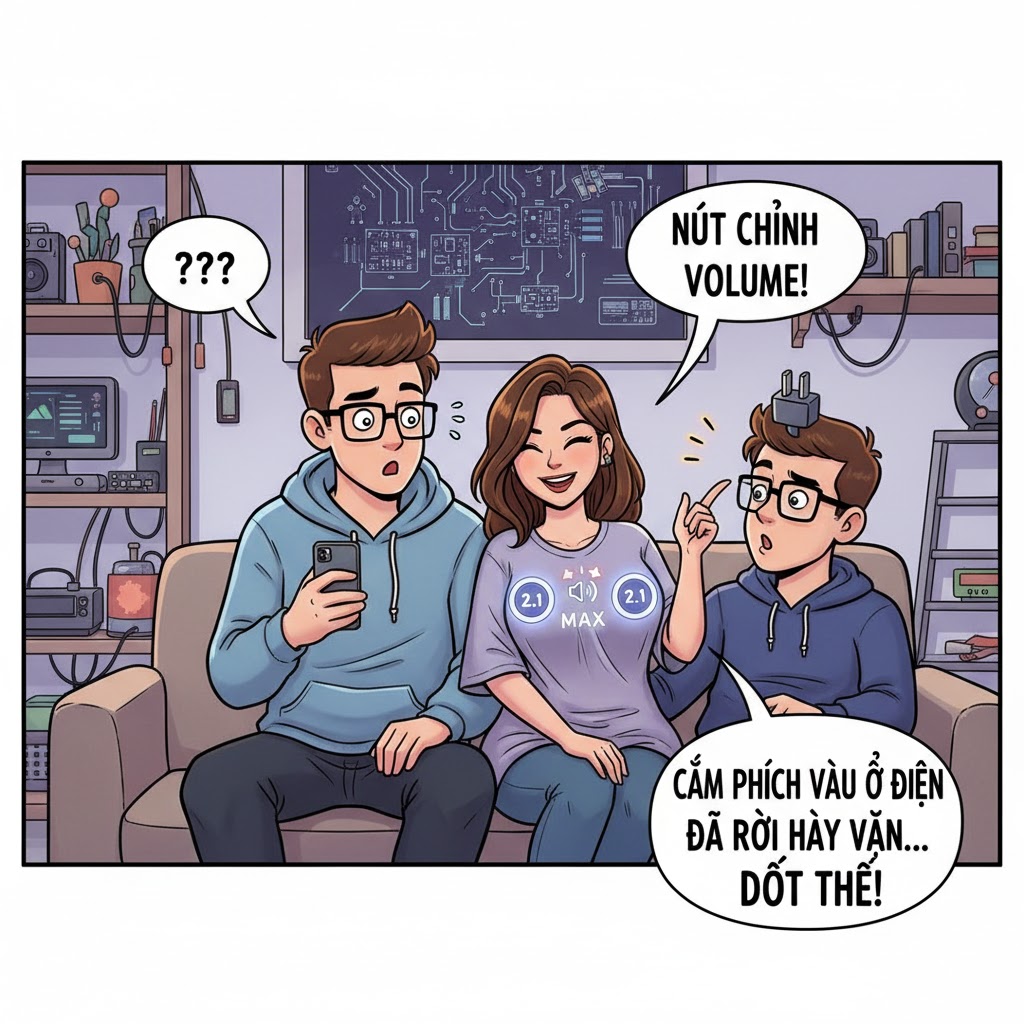 Nàng nũng nịu: – Đây là "cặp loa 2.1" đấy!