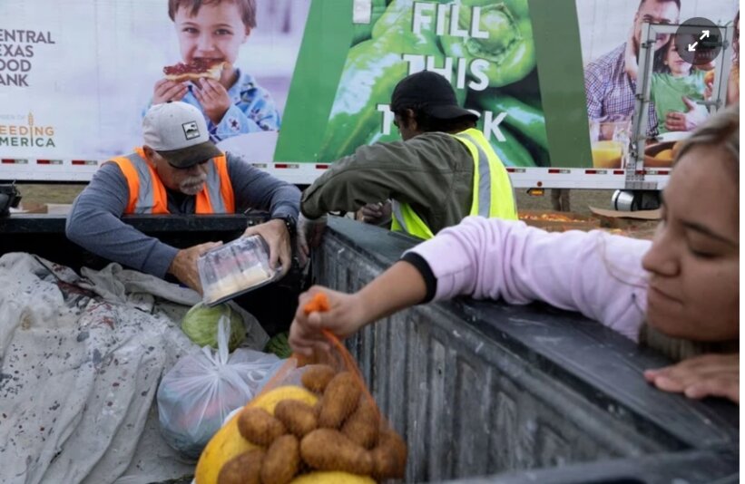 Một chuyến xe phân phối thực phẩm từ thiện tại Cedar Creek, bang Texas, Mỹ, trong ngày 1/11. Ảnh: Reuters.