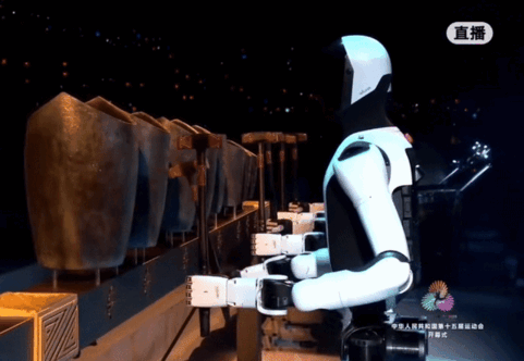 Robot hình người gõ nhạc cụ đồng nghìn năm tuổi tại lễ khai mạc Đại hội Thể thao toàn quốc Trung Quốc đã thu hút sự chú ý khi kết hợp công nghệ robot với di sản âm nhạc.
