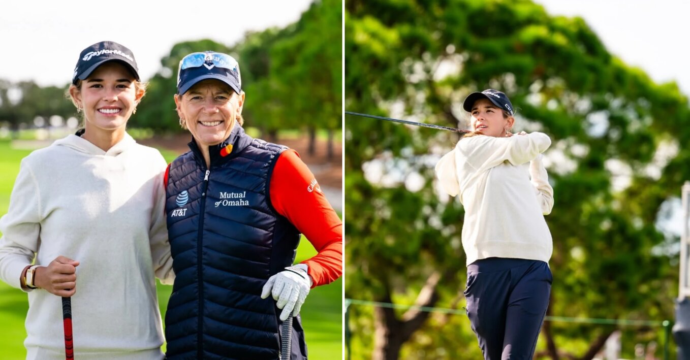 Kai Trump gặp huyền thoại golf nữ Annika Sörenstam và đã có những cú đánh đầu tiên tại giải golf The Annika. Ảnh: Kai Trump/Instagram.