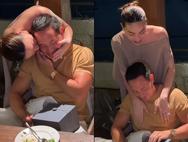Bữa tiệc mừng có sự xuất hiện của cả các nhóc tỳ Lisa và Subeo. Hành động của hai con Hồ Ngọc Hà dành cho Kim Lý nhận được sự chú ý và lời khen ngợi của tất cả mọi người.