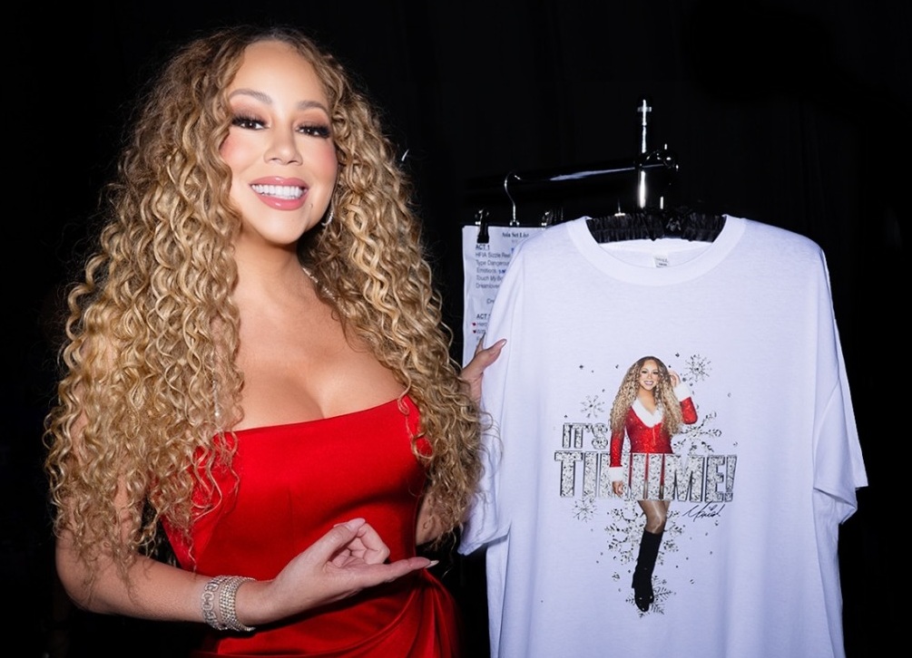 Mariah Carey giới thiệu mẫu áo thun in hình ảnh của cô trong video "It's Time" mới nhất. Ảnh: Nhân vật cung cấp