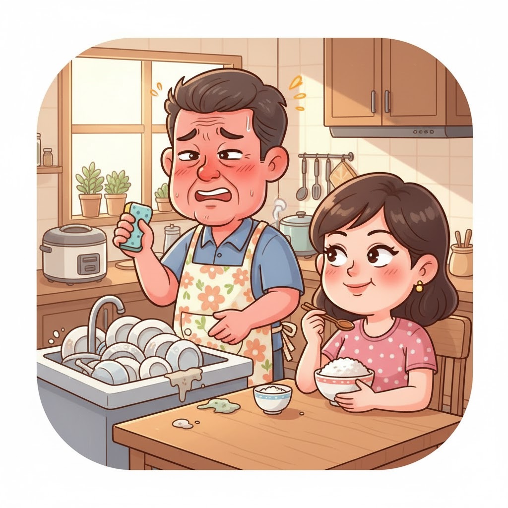 “Trước đây cô ấy dịu dàng, ngọt ngào biết bao. Còn bây giờ… Tự nhiên mình trở thành người rửa bát chuyên nghiệp? Không lẽ trụ cột gia đình lại chịu lép vế thế này?”