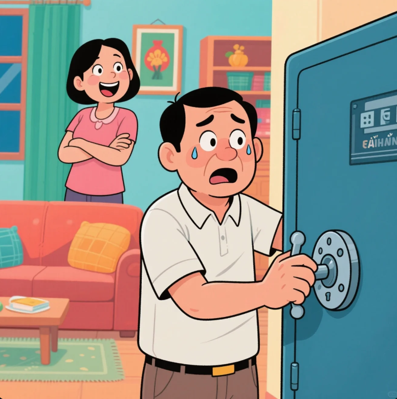 Còn tôi… đứng trước két sắt, nhìn quay số như nhìn vào đề thi đại học. Không nhớ nổi ngày tỏ tình, lại chẳng biết xoay chiều nào. Cuối cùng, tôi lặng lẽ… đi vay tiền thằng bạn.