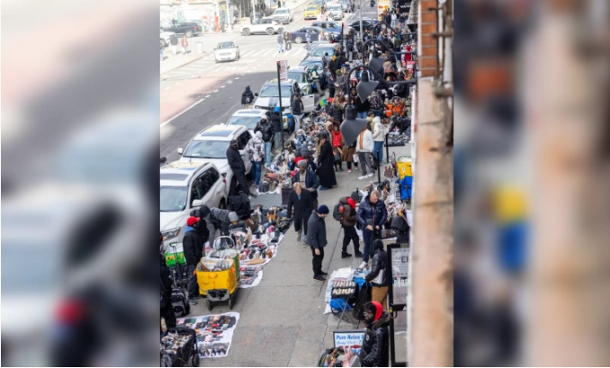 Khi xe tuần tra của Sở Cảnh sát New York (NYPD) chạy ngang qua, bật còi hụ, hàng chục người đàn ông bắt đầu cuống cuồng gấp bàn ghế, gom hàng hóa vào vải bạt, xe đẩy rồi vội vã tản xuống vỉa hè hoặc lao xuống ga tàu điện Canal Street. Nhưng chỉ vài phút sau khi cảnh sát đi khỏi, các tiểu thương nhanh chóng bày lại hàng như cũ.