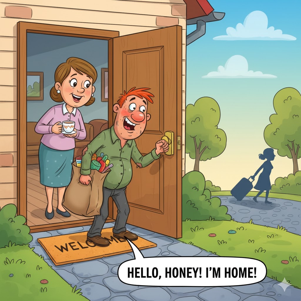 – Vâng! Em chỉ là… hàng xóm của anh thôi! Còn vợ anh bước chân ra khỏi nhà từ hôm qua rồi. Can đảm lên và… chúc anh may mắn!