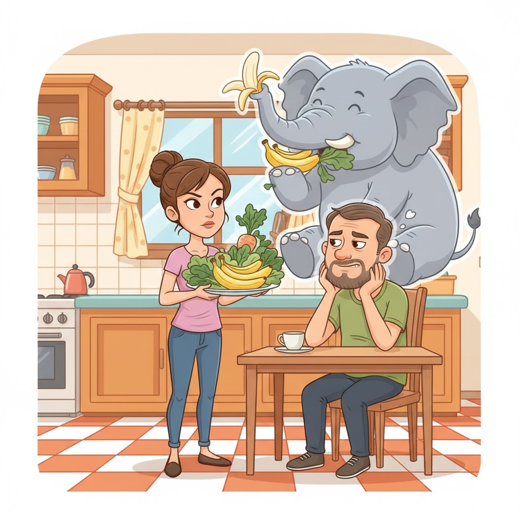 – Anh ạ, từ hôm nay em chỉ ăn rau và chuối thôi, để giảm cân!