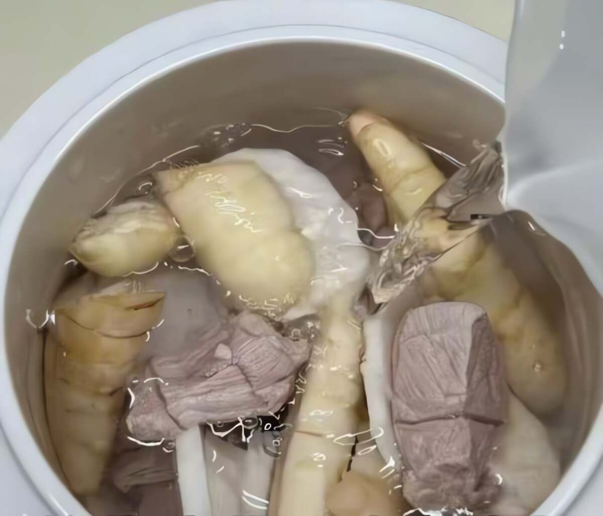 - Thêm một lượng nước tinh khiết thích hợp, cho vào nồi nấu chậm bằng điện và hấp trong khoảng 2 giờ.