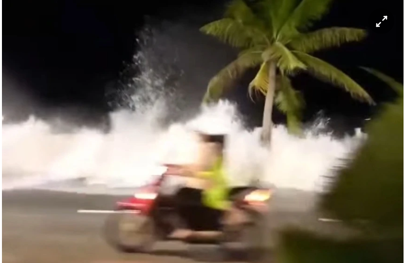 Sóng dữ ở Nha Trang Tối 27/11, biển Nha Trang có sóng cao, đánh tràn vào đường phố. Cảnh tượng được người dân địa phương ghi lại.