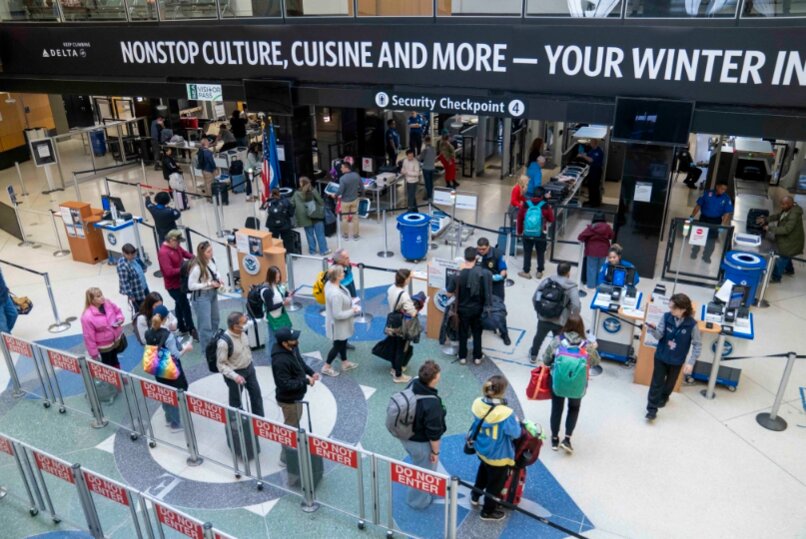 Người dân xếp hàng chờ kiểm tra an ninh tại sân bay ở Washington, Mỹ, hôm 10/11. Ảnh: Reuters