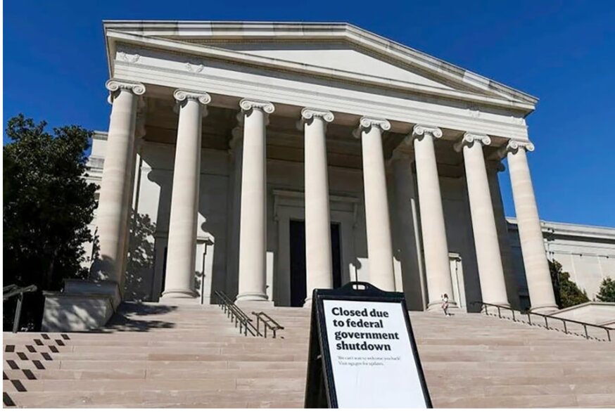 Bảng thông báo đóng cửa tạm thời đặt tại Bảo tàng nghệ thuật quốc gia ở Washington, D.C. (Mỹ). Ảnh: Tân Hoa Xã