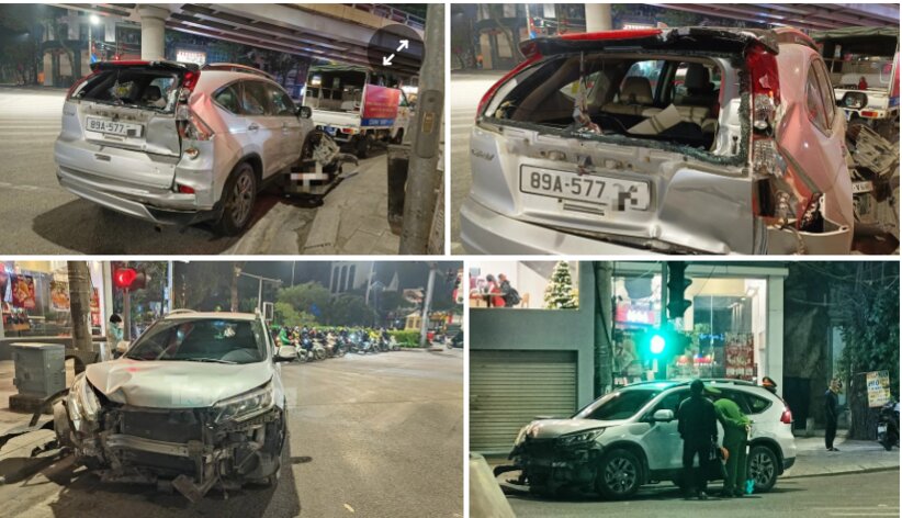 Sau va chạm, ôtô này không dừng lại mà tiếp tục di chuyển khoảng hơn 100 m đến ngã tư giao cắt Láng - Láng Hạ thì bị chặn lại.