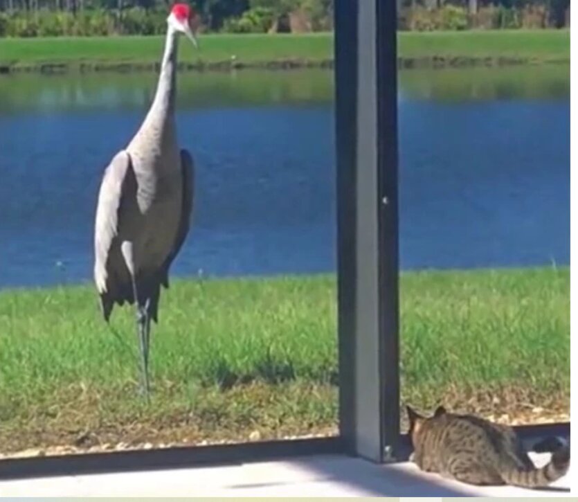 Một đoạn video ghi lại tình huống trớ trêu khi mèo âm thầm phục kích sếu nhưng lại nhận cái kết bất ngờ.