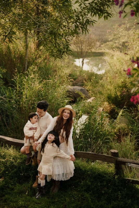Gia đình Nhã Phương trong khung hình tại khu nghỉ dưỡng ở Đà Lạt.