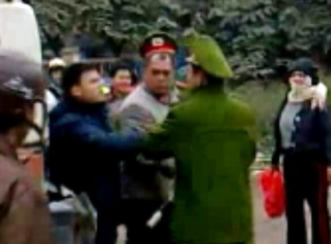 Cảnh sát bị xe tải dúi đẩy trên đường