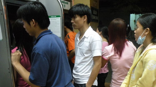 Anh Lâm Văn Thanh - Công ty Toyo (Khu chế xuất Tân Thuận) - cho biết đă quá sợ cảnh mỗi lần đi rút tiền phải chờ đợi 30-40 phút. Anh cho biết đầu tháng và cuối tháng là những ngày căng nhất. Có khi chờ cả tiếng mới đến lượt nhưng lại đúng lúc máy hết tiền phải chạy đi nơi khác rút tiền.