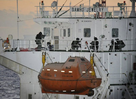 Đặc nhiệm Hàn Quốc đột kích chống cướp biển trên tàu Samho Jewelry. Ảnh: