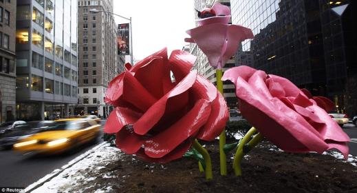 New York: 38 bông hoa hồng khổng lồ “mọc” dưới trời tuyết