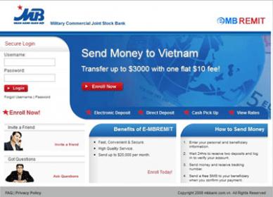 Quảng cáo cho dịch vụ gửi tiền về Việt Nam online của một nhà băng. (H́nh minh họa, đến từ website www.vctv.vn)