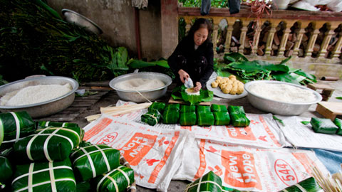 Làng bánh chưng nhộn nhịp đón Tết