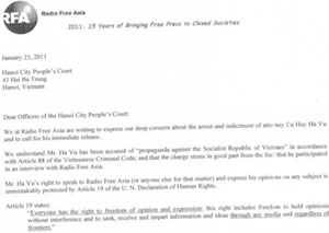 Đài Á Châu Tự Do yêu cầu VN thả ông Cù Huy Hà Vũ