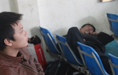 Mệt bã vì chen lấn, ngủ ngay tại phòng vé