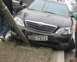 Hà Nội: Xế hộp xịn "bay" lên dải phân cách