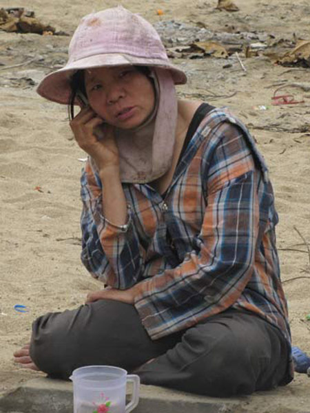 Ăn xin nhưng vẫn tranh thủ “buôn” điện thoại di động.