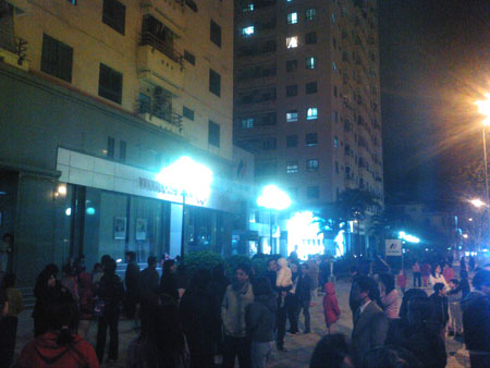 Khoảng 21 giờ 10, tại chung cư mới Kim Liên, quận Đống Đa, Hà Nội xảy ra hiện tượng rung lắc, khoảng 50 - 60 người dân sống ở đây hoảng loạn chạy xuống đường, nhiều người không kịp khóa nhà cửa.