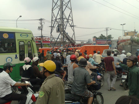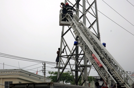 Gần trăm cảnh sát cứu một thanh niên leo cột điện cao thế