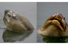 Cụ rùa đen có  đầu nhọn, miệng bé. Cụ rùa vàng đầu to, miệng rộng. Cụ khác có vết lõm  giống sẹo ở lưng... rất giống cụ mới 'nhập viện'.