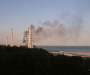Khói đen từ ḷ phản ứng thứ ba của nhà máy điện hạt nhân Tepco Fukushima hôm 23 tháng 3 năm 2011.